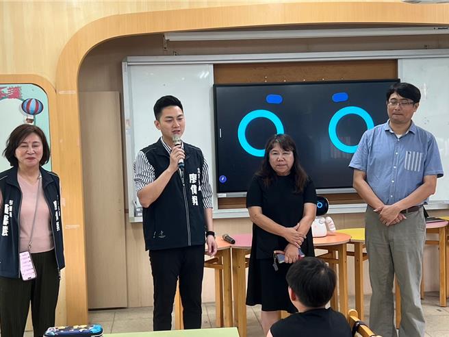 藍營立委廖偉翔、市議員黃馨慧盼中央重視並給予學校適當補助,落實發展AI教育。(陳淑娥攝)