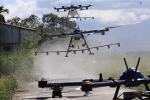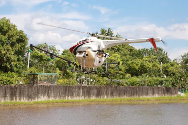 臺南烏山頭水庫16日示範無人機噴灑稻草分解菌,加速稻草腐化,有助於「稻草還田」循環農業資源再利用。(圖/ 中央社)