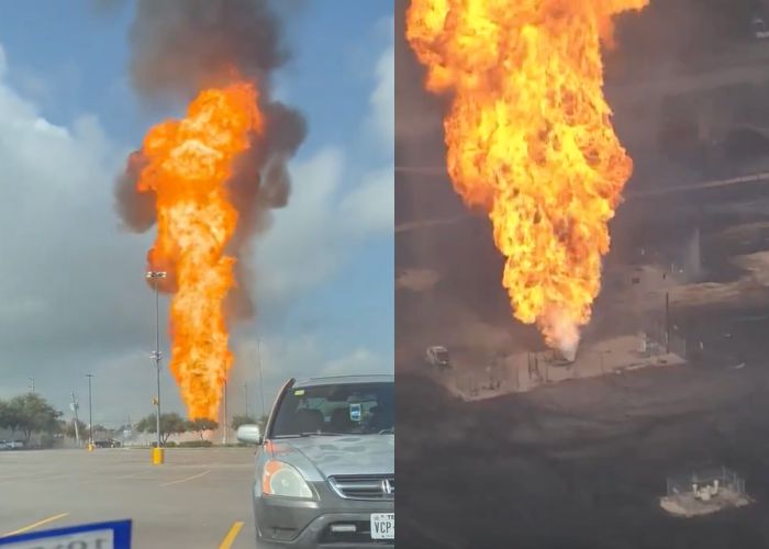 ▲德州天然氣管線爆炸竄大火。(圖/翻攝X)