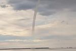 水龍捲現身七股潟湖近海 狂吸海水沖天際 遊客驚呼奇觀