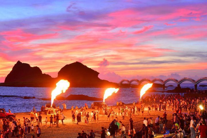臺東成功鎮三仙臺以自然景觀及地質奇觀聞名,當太陽從海平面升起,海天一色演繹着太平洋的極致壯麗,更是迎接曙光的絕佳景點,三仙臺知名地標八拱跨海步橋更成爲畫龍點睛之筆,與日出時分冉冉升起的曙光相互輝映。光雕音樂以「勇氣與曙光」爲主題,由臺東球領軍熊贊球、彩虹球、曙光球及今年全新亮相的 COACH 勇氣球帶來表演,雖然因瞬間風勢過大提早收球,不過現場加碼開放近距離拍照體驗,讓每一位觀衆陶醉在音樂中享受三仙臺的清晨時光,與曙光共同迎接嶄新一天的到來。