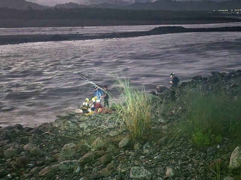 高雄市消防局今天傍晚5時36分據報,大雨過後,溪水暴漲,司機及怪手受困於六龜、里港間大津橋附近沙丘,7輛挖土機距岸邊約有30公尺,司機無法渡過溪水,其中1輛挖土機被溪水淹上駕駛座,岌岌可危。