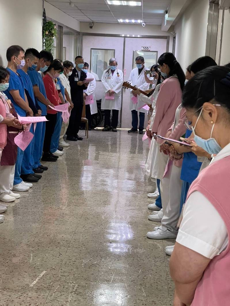工程完工及人員整備齊全後,今早,副院長徐光南、張義芳與全體醫護人員進行平安禮拜,院牧部牧師周凱傑在病房引領大家唱詩歌,並以油膏抹病房大門,象徵平安及潔淨的,將十字架掛在牆上後病房正式啓用。